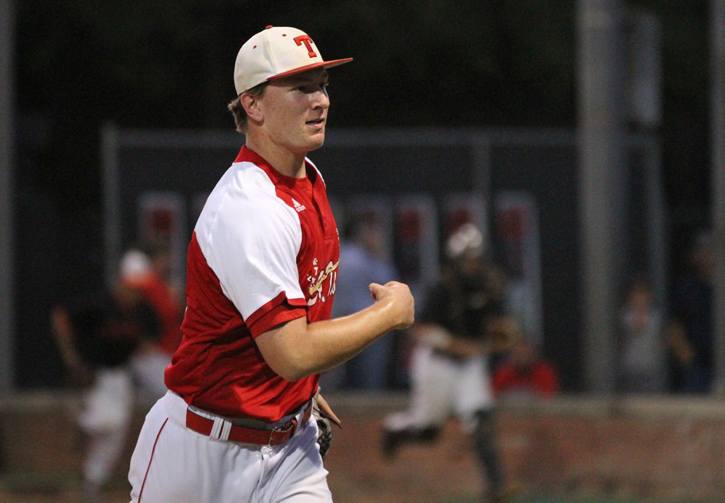 Righthander Owen Meaney ‘18 (LSU) allowed only two hits while striking out 13 in a dominant seven-inning complete game, and Philip Matulia ‘18 (Louisiana Tech) hammered a two-run home run in a 6-0 victory at St. Pius X that raised the Eagles’ season record to 27-5.