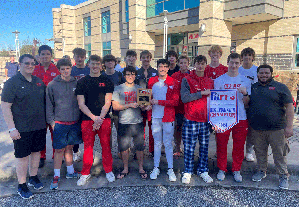 Tyler Sandrock ‘24 captured one individual gold medal and was a critical cog in three essential relay results to ignite St. Thomas to its ninth consecutive TAPPS Division I East Region championship at the Univesity of Houston Campus Recreation & Wellness Center Natatorium.