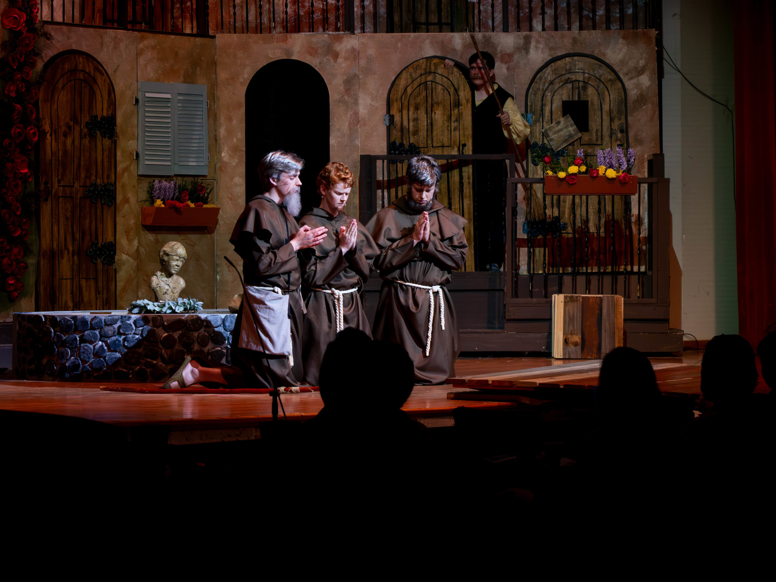 The cast featured standout performances from IWA junior Avery Tucker as Nonna, St. Agnes senior Emma DeAnda as Bianca, and Duchesne senior Emily Salvatierra as the fiery Sabina. Behind the curtain, student assistant directors Charlie Prouhet and Debra Salyers helped run rehearsals and coordinate technical elements. “They worked like crazy,” the director said. “It was truly a team effort.”